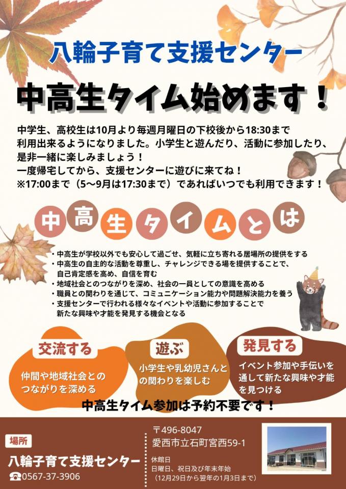令和7年10月~中高生タイムを始めます!
